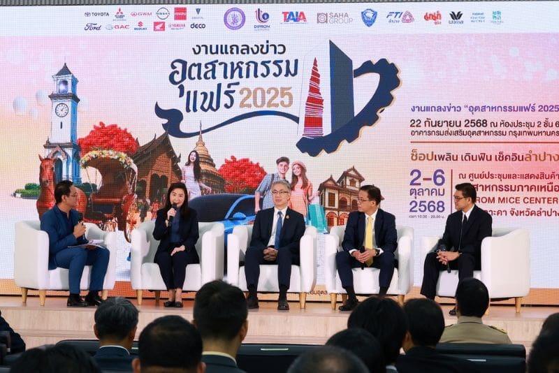 กระทรวงอุตสาหกรรม ผนึกกำลังครั้งสำคัญกับ ภาคเอกชน แถลงข่าวเตรียมจัดงานบิ๊กอีเวนท์ อุตสาหกรรมแฟร์ 2025 “ช้อปเพลิน เดินฟิน เช็คอินลำปาง” ระหว่างวันที่ 2 – 6 ตุลาคม 2568 ณ ศูนย์ประชุมและแสดงสินค้าอุตสาหกรรมภาคเหนือ พบกับมหกรรมสินค้าคุณภาพ ราคาประหยัด ลดค่าครองชีพ อาทิ เสื้อผ้า อาหาร เครื่องอุปโภค-บริโภค และสินค้าอื่น ๆ อีกมากมายที่ยกขบวนพาเหรดจากเครือสหพัฒน์และผู้ประกอบการ SME ไทยทั่วประเทศ พร้อม Mind Motorshow รถที่ใช่ดีลที่ชอบ