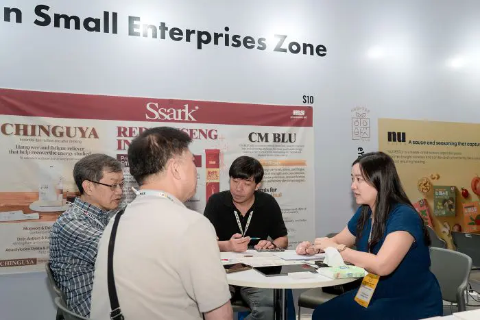 1. Trade & Business Zone โซนจัดแสดง ชม ชิม ทดลอง รวมทั้งเจรจาและจับคู่ธุรกิจ (Buyer Matching) กับผู้ผลิตและจัดจำหน่ายผลิตภัณฑ์อาหารจากเกาหลี อาทิ ขนมขบเคี้ยว ซอส เครื่องดื่ม อาหารเพื่อสุขภาพและอาหารแช่แข็ง ฯลฯ ที่เข้าร่วมงานฯ กว่า 150 แบรนด์ พร้อมสินค้า อุปกรณ์ และวัตถุดิบร่วมจัดแสดงกว่า 1,400 รายการ รวมถึงการจัดแสดงจาก 6 พาวิเลียน ประกอบด้วย นิคมอุตสาหกรรมอาหารแห่งชาติของเกาหลี (Korea National Food Cluster (Foodpolis)), สถาบันอุตสาหกรรมอาหารชีวภาพ ช็อนบุก (Jeonbuk State Institute for Food-Bioindustry), คังวอน พาวิลเลียน, เมืองยังจู จังหวัดคยองกี พาวิลเลียน, จอนนัม พาวิลเลีย และ เซจู พาวิลเลีย