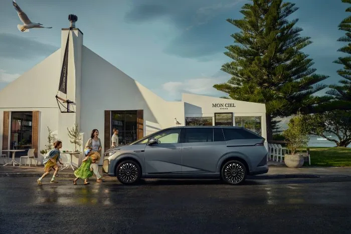 เอ็กซ์เผิง ‘New X9’ โฉมใหม่ของรถตู้ไฟฟ้าทางสปอร์ตที่คล่องตัวและอัจฉริยะที่สุด มาพร้อมการปรับโฉม ทั้งภายนอกและภายใน พร้อมยกระดับความหรูหราด้วยการเพิ่มฟังก์ชันการใช้งานที่เคยอยู่ในรถหรู และเทคโนโลยีให้ล้ำหน้ากว่าเดิม ติดตั้ง Turing AI Chip ที่ให้พลังในการประมวลผล AI (AI Brain Power) แรงขึ้นถึง 3 เท่า รูปลักษณ์ภายนอกยังคงคอนเซ็ปต์ดีไซน์แบบ Starship ล้ำอนาคตสไตล์คูเป้ กันชนด้านหน้าปรับใหม่ มาพร้อมระบบ Active Grille Shutter กระจังหน้าด้านล่างเปิด-ปิดอัตโนมัติ ช่วยลดแรงต้านอากาศและเพิ่มประสิทธิภาพการใช้พลังงาน ล้อขนาด 20 นิ้ว ดีไซน์แบบ Multi-Spoke และ Starlight Floating ที่โลโก้ XPENG จะตั้งตรงอย่างสง่างามอยู่เสมอ