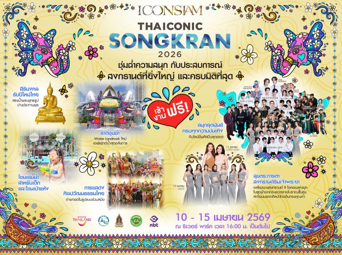 ไอคอนสยาม แลนด์มาร์กระดับโลกริมแม่น้ำเจ้าพระยา ผนึกกำลังพันธมิตรภาครัฐและเอกชน เตรียมจัด Water Festival มหาสงกรานต์สุดยิ่งใหญ่ “ICONSIAM THAICONIC SONGKRAN 2026 : สาด สนุก สุข สิริมงคล สงกรานต์ไทย” ตอบโจทย์ทั้งเล่นน้ำสนุก และนำเสนอเสน่ห์ของประเพณีวัฒนธรรมไทยที่หาชมได้ยาก ยกระดับให้สงกรานต์ประเทศไทยเป็นเทศกาลระดับโลก (Global Festival) ชูไฮไลต์ส่งมอบประสบการณ์แบบ THAICONIC ที่ผสานมรดกทางวัฒนธรรมไทยกับความบันเทิงแห่งยุค คว้า “หลิงออม” และ “4EVE” ไอคอนแห่งยุคปรากฏโฉมเป็นนางสงกรานต์ประจำปี 2569 นำขบวนแห่สงกรานต์สุดวิจิตรตระการตา นำความเป็นไทยปรากฏสู่สายตาผู้คนจากทั่วโลก