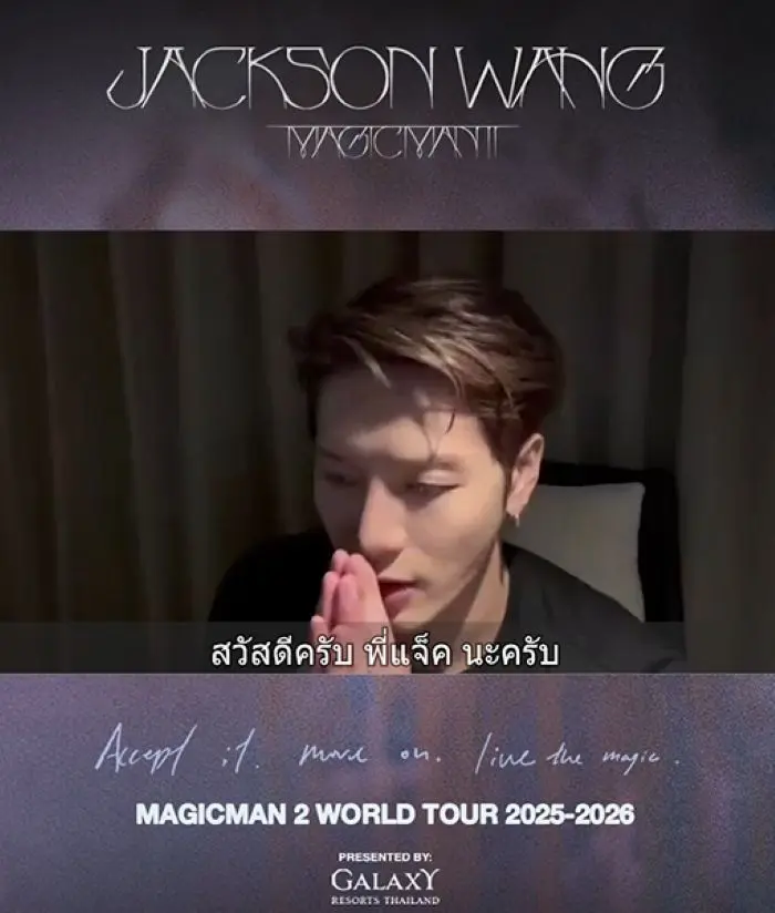 คอนเสิร์ต “MAGICMAN 2 WORLD TOUR 2025–2026 in Bangkok Presented by Galaxy Resorts Thailand” ของศิลปินระดับโลก “แจ็คสัน หวัง” (JACKSON WANG) กำลังจะเกิดขึ้นแล้วในสัปดาห์หน้า! พี่แจ็คเตรียมมาระเบิดความมันส์ให้แฟน ๆ ชาวไทยได้สนุกกันแบบสุด ๆ แล้ว ในวันที่ 3–4 ตุลาคม 2568 ณ อิมแพ็ค อารีน่า เมืองทองธานี