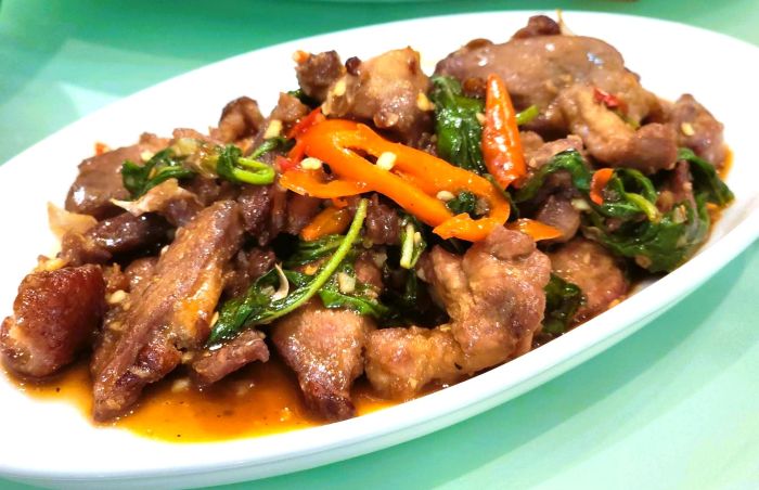 ทีเด็ดนอกจากหนังเป็ดสีสวย ความนุ่มหนึบของแป้ง และความสดชื่นของผักเครื่องเคียง ตัดรสด้วยซอสหวานเค็มกลมกล่อมแล้ว เมนูจากเนื้อเป็ดที่มีให้เลือกสั่งนั้นเด็ดมาก รสชาติจัดจ้านถูกปากคนไทย โดยเฉพาะ เมนูเนื้อเป็ดผัดพริกไทยดำ และเนื้อเป็ดผัดกะเพรา