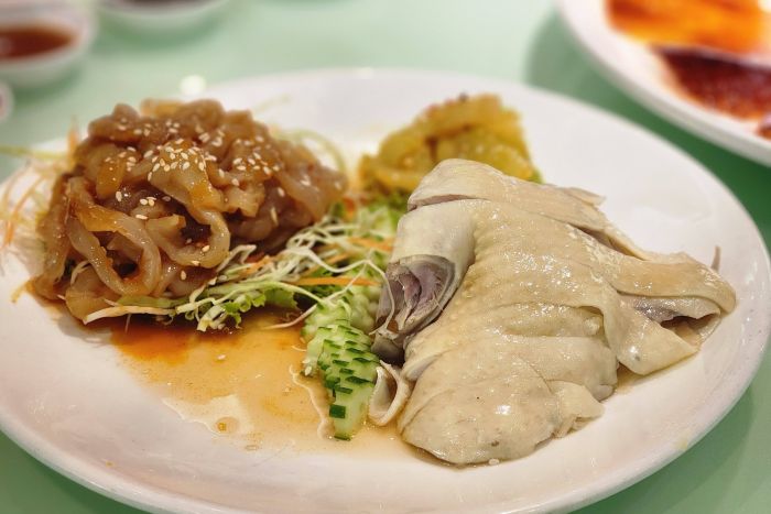 ไก่แช่เหล้า ยำแมงกระพรุนน้ำมันงา ไก่เนื้อนุ่ม ชุ่มฉ่ำจากเหล้าจีน เสิร์ฟมาพร้อมกับยำแมงกะพรุนน้ำมันงา