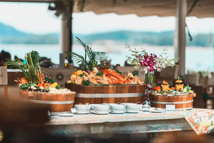 ทุกวันอาทิตย์ เวลา 12.00–15.00 น. ผู้เข้าร่วมงานจะได้อิ่มเอมกับบุฟเฟ่ต์บรันช์ริมชายหาด พร้อมสเตชันอาหารปรุงสดใหม่ที่เสิร์ฟทั้งอาหารทะเลสด ชีสนำเข้า ซูชิ เมนูเมดิเตอร์เรเนียน บาร์บีคิว และขนมหวานโฮมเมด ควบคู่ไปกับดนตรีสดในบรรยากาศทะเลสว่างไสวยามบ่าย หลังจากนั้น ความสนุกจะเปลี่ยนโหมดสู่ปาร์ตี้ริมสระสุดคึกคัก ตั้งแต่เวลา 15.00 น. ยาวไปจนถึงค่ำ
