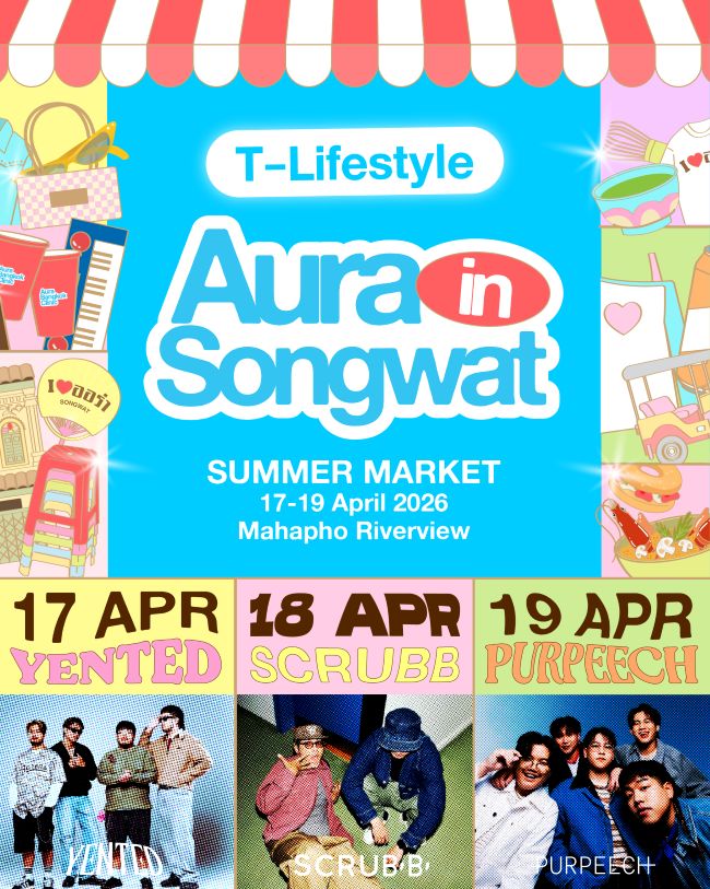 Aura Wellness ปลุกกระแส T-Lifestyle กับอีเวนต์ “Aura in Songwat” เปิดประตูสู่เสน่ห์ย่านเก่าริมแม่น้ำเจ้าพระยา ระหว่างวันที่ 17–19 เมษายน ณ ทรงวาด จุดหมายใหม่ของนักท่องเที่ยวทั้งไทยและต่างชาติ ผ่านการนำเสนอ Summer Market ริมแม่น้ำเจ้าพระยา ที่ยกทัพร้านค้า SMEs และเหล่าอินฟลูเอนเซอร์สายแฟชั่นมาส่งต่อความสวยรียูสความเทสต์ดี พร้อมสนุกไปกับคอนเสิร์ตจากศิลปินชื่อดัง อาทิ Scrubb, PURPEECH และ YENTED ควบคู่กับการยกระดับมรดกภูมิปัญญาทางวัฒนธรรมของประเทศไทยโดย “AURASOL Wellness & Spa” ที่ผสานศาสตร์การนวดไทยและวัตถุดิบจากชุมชนพื้นบ้านทั่วประเทศ เพื่อขับเคลื่อนอุตสาหกรรม Wellness