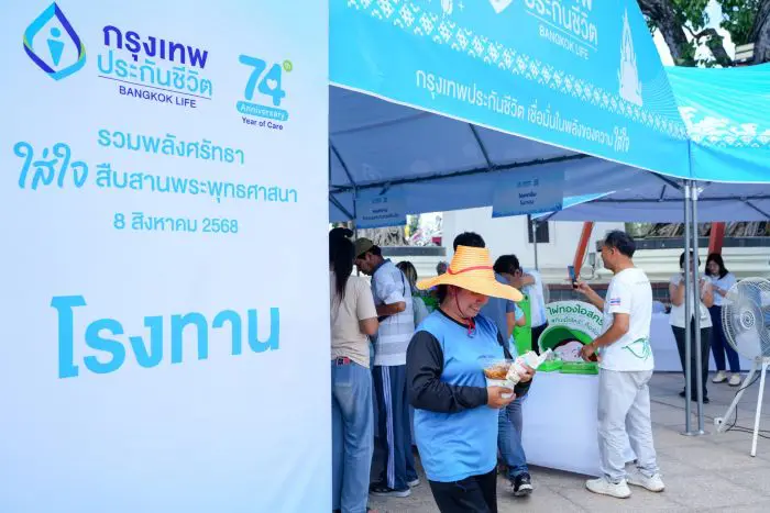 กรุงเทพประกันชีวิต จัดกิจกรรม “รวมพลังศรัทธา ใส่ใจพระพุทธศาสนา” เนื่องในโอกาสครบรอบ 74 ปี สานต่อพันธกิจขององค์กรในเรื่องการใส่ใจชุมชนและสังคม ภายใต้แนวคิด “ใส่ใจพุทธศาสนา เพื่อความสุขที่ยั่งยืน” ควบคู่กับความเข้มแข็งของศาสนา ชุมชน และสังคม โดยได้มอบสิ่งอำนวยความสะดวกในการจัดกิจกรรมศาสนพิธี งานสาธารณะประโยชน์ พร้อมจัดพิธีทำบุญถวายภัตตาหารเพลแด่พระสงฆ์ เพื่อสืบสานพระพุทธศาสนา และเสริมสร้างความเป็นสิริมงคล โดยมีผู้บริหาร พันธมิตร ทีมตัวแทน และลูกค้า เข้าร่วมงาน นอกจากนี้ยังได้จัดซุ้มอาหารและเครื่องดื่มโรงทาน สำหรับประชาชนทั่วไปในพื้นที่ และนักท่องเที่ยว จำนวน 600 คน และยังมอบต้นไม้เพื่อเพิ่มความร่มรื่น ณ วัดพระศรีรัตนมหาธาตุวรมหาวิหาร จังหวัดพิษณุโลก