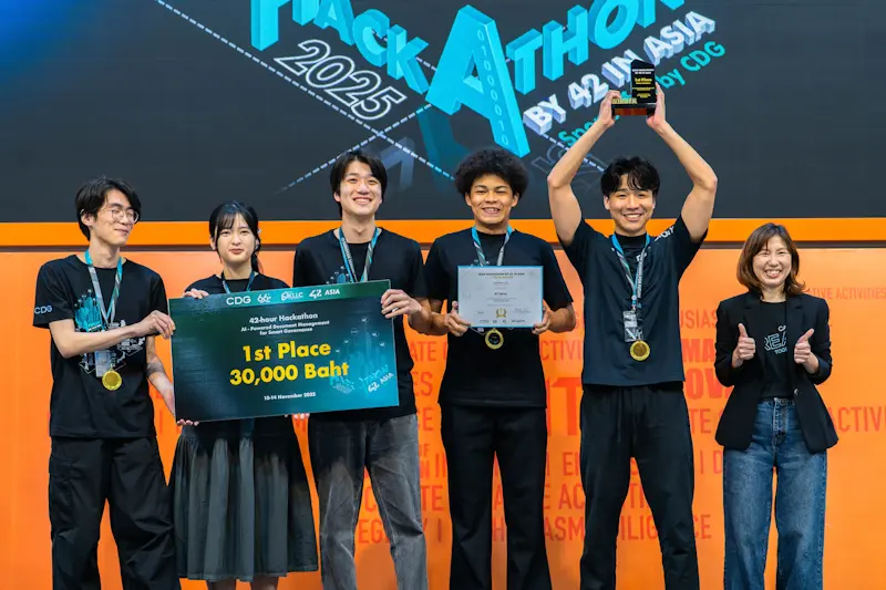 กลุ่มบริษัทซีดีจี ร่วมกับ 42 Bangkok สถาบันโปรแกรมเมอร์ชั้นนำระดับโลก ภายใต้การกำกับดูแลของสถาบันเทคโนโลยีพระจอมเกล้าเจ้าคุณทหารลาดกระบัง (สจล.) จัดการแข่งขัน “CDG x 42Asia Hackathon 2025” ภายใต้โจทย์ “AI-Powered Document Management for Smart Governance” มุ่งสร้างโซลูชันที่ยกระดับหน่วยงานภาครัฐก้าวสู่ยุคดิจิทัลไปอีกขั้นผ่านฝีมือของผู้เข้าแข่งขันทั่วเอเชีย โดยทีม “Kaetai” จาก 42Tokyo ประเทศญี่ปุ่นคว้ารางวัลชนะเลิศ ด้วยแนวคิดที่ออกแบบให้ AI เรียนรู้และทำงานได้จริงกับเอกสารรูปแบบต่าง ๆ ของหน่วยงานรัฐ ตอกย้ำบทบาทการเชื่อมั่นในศักยภาพของคนรุ่นใหม่ พลิกวิธีการทำงานภาครัฐสู่ Smart Governance ด้วยเทคโนโลยีร่วมกัน