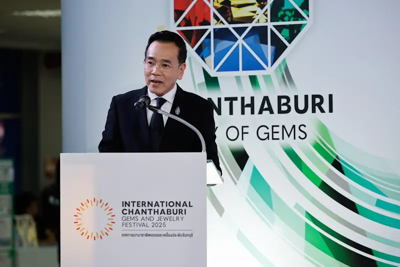 นายเอกฉัตร ศีตวรรัตน์ รองปลัดกระทรวงพาณิชย์ ประธานในพิธีเปิดงานงานเทศกาลนานาชาติพลอยและเครื่องประดับจันทบุรี 2025 กล่าวว่า อุตสาหกรรมอัญมณีและเครื่องประดับเป็นหนึ่งในกลไกสำคัญที่ขับเคลื่อนเศรษฐกิจของประเทศ มียอดการส่งออกสูงเป็นอันดับ 3 ของสินค้าโดยรวมในประเทศ อีกทั้ง ประเทศไทยยังเป็นผู้ส่งออกพลอยสีที่สำคัญอันดับ 3 ของโลก ซึ่งจังหวัดจันทบุรี ถือเป็นหนึ่งในรากฐานสำคัญของอุตสาหกรรมอัญมณีและเครื่องประดับไทย ในฐานะเป็นศูนย์กลางอุตสาหกรรมอัญมณีแบบครบวงจรที่ได้รับการยอมรับระดับโลกมายาวนาน ในด้านศักยภาพความพร้อม ตั้งแต่แหล่งวัตถุดิบ กระบวนการผลิต ฝีมือการเจียระไนอันประณีตที่สืบสานภูมิปัญญาท้องถิ่นจากรุ่นสู่รุ่น ไปจนถึงเป็นแหล่งการค้า การส่งออก จึงเรียกได้ว่า จังหวัดจันทบุรี เป็น “นครอัญมณีของโลก” อย่างแท้จริง