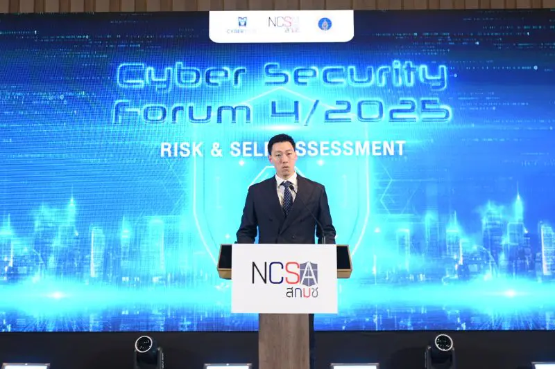 สำนักงานคณะกรรมการการรักษาความมั่นคงปลอดภัยไซเบอร์แห่งชาติ (สกมช.) จัดงาน Cyber Security Forum 4/2025: Risk & Self-Assessment เพื่อเปิดเผยรายงานผลการประเมินความมั่นคงปลอดภัยไซเบอร์และรายงานการประเมินความเสี่ยงจากภัยคุกคามทางไซเบอร์ของประเทศไทย ประจำปี 2568 โดยมี พลอากาศตรี จเด็ด คูหะก้องกิจ ผู้ช่วยเลขาธิการ สกมช. เป็นประธานเปิดงาน