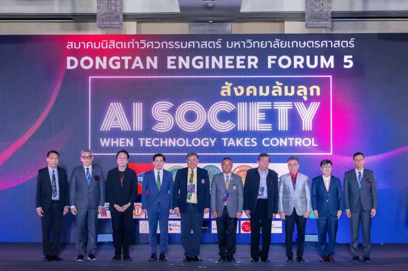 เวทีสัมมนา Dongtan Engineer Forum 5 “AI SOCIETY: สังคมล้มลุก” จัดโดย สมาคมนิสิตเก่าวิศวกรรมศาสตร์ มหาวิทยาลัยเกษตรศาสตร์ ได้รับความสนใจอย่างล้นหลามจากผู้เข้าร่วมกว่า 400 คน ทั้งจากภาครัฐ เอกชน และสถาบันการศึกษา ถือเป็นอีกหนึ่งความสำเร็จที่ยิ่งใหญ่ของเวทีที่รวมพลังของ “วิศวกร–นักคิด–นักสร้างสรรค์” เพื่อแลกเปลี่ยนมุมมองและจุดประกายแนวทางใหม่ต่ออนาคตของสังคมไทยในยุค AI