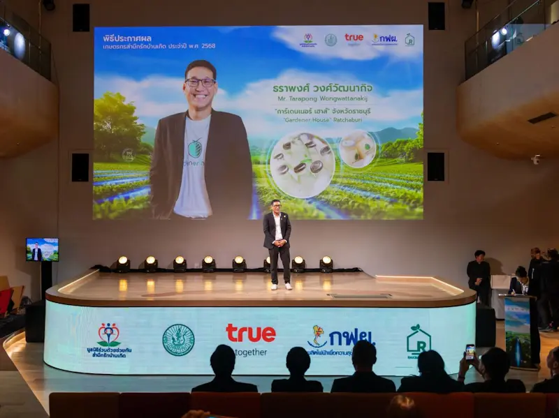 คุณซิกเว่ เบรกเก้ ประธานคณะผู้บริหารกลุ่ม บมจ. ทรู คอร์ปอเรชั่น กล่าวว่า “ด้วยภาคการเกษตรเป็นหนึ่งในเสาหลักของเศรษฐกิจไทย และเกษตรกร ซึ่งเป็นกระดูกสันหลังของชาติ คือรากฐานสำคัญที่ช่วยขับเคลื่อนสังคมให้เข้มแข็ง เพราะเป็นผู้ผลิตอาหารที่ปลอดภัย เปี่ยมด้วยคุณค่าทางโภชนาการ และยังมีบทบาทสำคัญอย่างยิ่งต่ออนาคตของประเทศไทย ด้วยเหตุนี้ ทรู คอร์ปอเรชั่น จึงมุ่งมั่นในการเป็นผู้นำบริษัทโทรคมนาคม-เทคโนโลยีไทยที่นำความเชี่ยวชาญ เทคโนโลยี และระบบนิเวศดิจิทัลครบวงจร มาช่วยแก้ไขปัญหาและรับมือกับความท้าทายสำคัญของประเทศ โดยเฉพาะผลกระทบจากการเปลี่ยนแปลงสภาพภูมิอากาศที่ยิ่งซับซ้อนและคาดเดาได้ยากขึ้น โดยตลอด 17 ปีที่ผ่านมา ทรู ได้ร่วม ‘ปลูก’ ความร่วมมือ และ ‘ปลูก’ ทักษะใหม่ๆ ให้แก่เกษตรไทย ผ่านความร่วมมือกับมูลนิธิร่วมด้วยช่วยกันสำนึกรักบ้านเกิด และกรมส่งเสริมการเกษตร พร้อมต่อยอดนำศักยภาพด้าน Climate-Tech ของทรู ตั้งแต่การนำ AI มาใช้เพื่อเพิ่มประสิทธิภาพการใช้พลังงาน ไปจนถึงระบบเกษตรแม่นยำอัจฉริยะ (IoT Precision Farming) พร้อมมุ่งสนับสนุนภาคการเกษตรไทยที่เป็นมิตรต่อสิ่งแวดล้อม สมาร์ทขึ้น เข็มแข็งขึ้น และมีความยืดหยุ่นต่อการเปลี่ยนแปลงมากขึ้น ในโอกาสนี้ ผมขอแสดงความยินดีกับเกษตรกรยุคใหม่ทุกท่านที่ร่วมกัน ‘ปลูกอนาคตการเกษตรไทย’ อย่างแท้จริง”