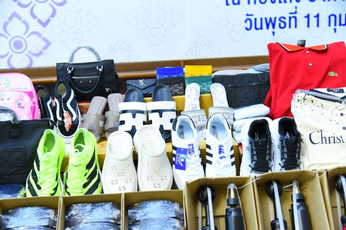 4. วันที่ 2 กุมภาพันธ์ 2569 กองสืบสวนและปราบปราม ได้ทำการอายัดสินค้า ณ เขตปลอดอากรแห่งหนึ่งในอำเภอศรีราชา จังหวัดชลบุรี ต้นทางจากประเทศเวียดนาม ใช้สิทธิประโยชน์เขตปลอดอากร ผลการตรวจสอบพบเสื้อละเมิดเครื่องหมายการค้า จำนวน 34,400 ตัว และเสื้อที่สำแดงเมืองกำเนิดเป็นเท็จ จำนวน 3,250 ตัว มูลค่าความเสียหายทางเศรษฐกิจ 215 ล้านบาท