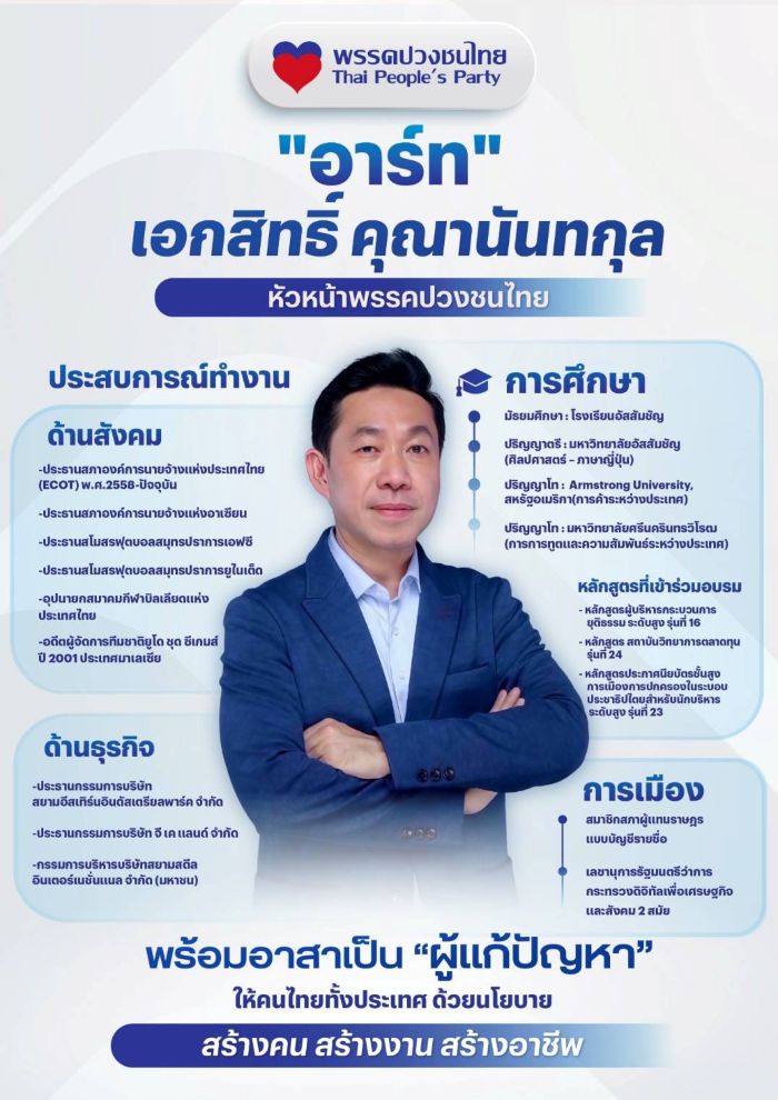 พรรคปวงชนไทย (Thai People’s Party) โดยการนำของ “อาร์ท” เอกสิทธิ์ คุณานันทกุล หัวหน้าพรรค เปิดตัวอย่างเป็นทางการ พร้อมอาสาเข้ามาเป็น “ผู้แก้ปัญหา” ให้กับคนไทยทั้งประเทศ นำคนไทยเดินหน้าฝ่าวิกฤตเศรษฐกิจ ความมั่นคง ปัญหาทุจริตคอร์รัปชันในสังคมไทย รวมถึงปัญหา สแกมเมอร์ คอลเซ็นเตอร์ ที่สร้างความเสียหายให้กับประชาชนและประเทศ พร้อมมุ่งมั่นยืนหยัดเป็นพรรคของ “ปวงชนไทย” อย่างแท้จริง ผ่านการทำงานทางการเมืองสุจริตที่ยึดโยงกับชีวิตจริงของประชาชน