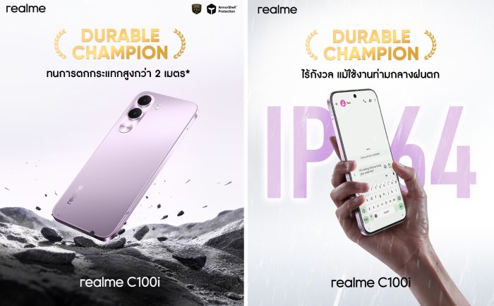 realme เปิดราคา “realme C100i” สมาร์ตโฟนระดับเริ่มต้นสายอึดอย่างเป็นทางการในราคา 4,999 บาท ชูคอนเซ็ปต์ “7000mAh พลังอึด ทนทานระดับแชมป์” อัดฟีเจอร์ระดับพรีเมียมเต็มอัตรา มอบประสิทธิภาพเกินราคา เพื่อสร้างมาตรฐานใหม่ของมือถือหลักพันสู่อุตสาหกรรมสมาร์ตโฟน!